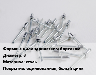 Заклепка с цилиндрическим бортиком 8 сталь оцинкованная, белый цинк