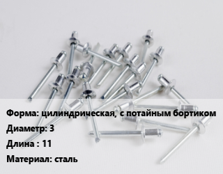 Заклепка цилиндрическая, с потайным бортиком 3х11 сталь