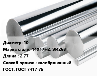 Круг нержавеющий 10 Сталь: 14Х17Н2, ЭИ268 L=2.77 калиброванный ГОСТ: ГОСТ 7417-75