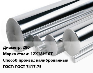 Круг нержавеющий 280 Сталь: 12Х18Н10Т калиброванный ГОСТ: ГОСТ 7417-75