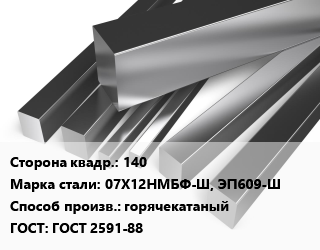 Квадрат нержавеющий 140 Сталь: 07Х12НМБФ-Ш, ЭП609-Ш горячекатаный ГОСТ: ГОСТ 2591-88