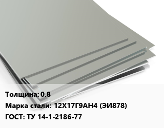 Лист нержавеющий 0.8 Сталь: 12Х17Г9АН4 (ЭИ878) ТУ 14-1-2186-77