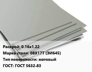 Лист нержавеющий 0.16х1.22 Сталь: 08Х17Т (ЭИ645) Тип:матовый ГОСТ 5632-83