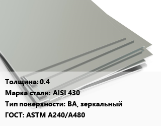 Лист нержавеющий 0.4 Сталь: AISI 430 Тип:BA, зеркальный ASTM A240/A480