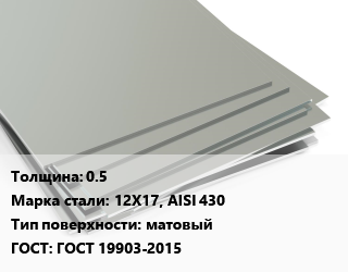 Лист нержавеющий 0.5 Сталь: 12Х17, AISI 430 Тип:матовый ГОСТ 19903-2015