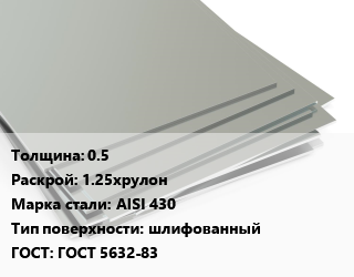 Лист нержавеющий 0.5 1.25хрулон Сталь: AISI 430 Тип:шлифованный ГОСТ 5632-83