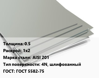 Лист нержавеющий 0.5 1х2 Сталь: AISI 201 Тип:4N, шлифованный ГОСТ 5582-75