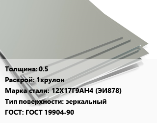 Лист нержавеющий 0.5 1хрулон Сталь: 12Х17Г9АН4 (ЭИ878) Тип:зеркальный ГОСТ 19904-90