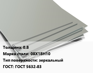 Лист нержавеющий 0.8 Сталь: 08Х18Н10 Тип:зеркальный ГОСТ 5632-83
