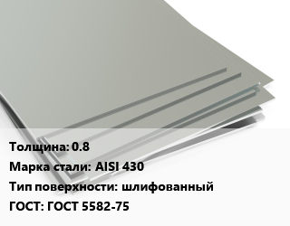 Лист нержавеющий 0.8 Сталь: AISI 430 Тип:шлифованный ГОСТ 5582-75