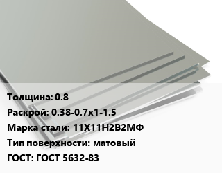 Лист нержавеющий 0.8 0.38-0.7х1-1.5 Сталь: 11Х11Н2В2МФ Тип:матовый ГОСТ 5632-83