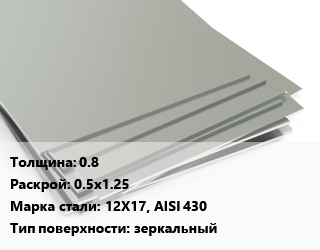 Лист нержавеющий 0.8 0.5х1.25 Сталь: 12Х17, AISI 430 Тип:зеркальный