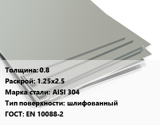Лист нержавеющий 0.8 1.25х2.5 Сталь: AISI 304 Тип:шлифованный EN 10088-2