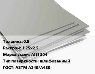 Лист нержавеющий 0.8 1.25х2.5 Сталь: AISI 304 Тип:шлифованный ASTM A240/A480