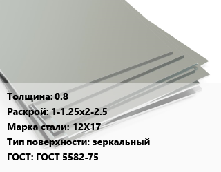 Лист нержавеющий 0.8 1-1.25х2-2.5 Сталь: 12Х17 Тип:зеркальный ГОСТ 5582-75