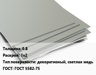 Лист нержавеющий 0.8 1х2 Тип:декоративный, светлая медь ГОСТ 5582-75
