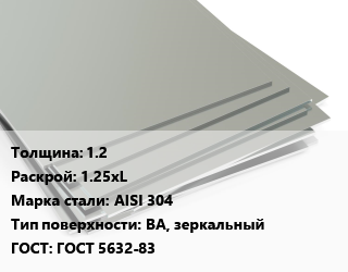 Лист нержавеющий 1.2 1.25хL Сталь: AISI 304 Тип:BA, зеркальный ГОСТ 5632-83