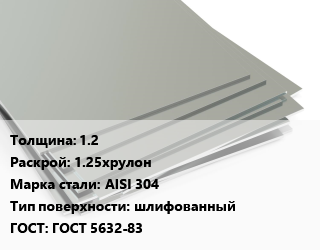 Лист нержавеющий 1.2 1.25хрулон Сталь: AISI 304 Тип:шлифованный ГОСТ 5632-83