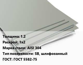 Лист нержавеющий 1.2 1х2 Сталь: AISI 304 Тип:SB, шлифованный ГОСТ 5582-75
