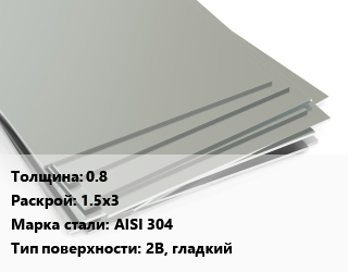 Лист нержавеющий 0.8 1.5х3 Сталь: AISI 304 Тип:2B, гладкий