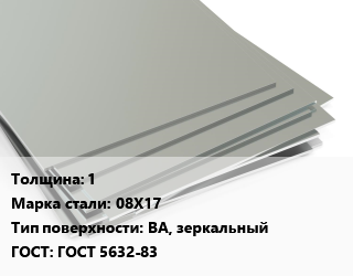 Лист нержавеющий 1 Сталь: 08Х17 Тип:BA, зеркальный ГОСТ 5632-83
