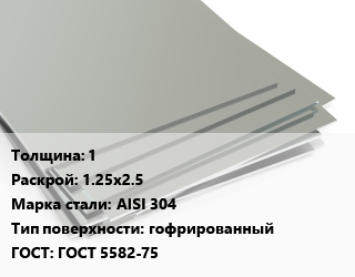 Лист нержавеющий 1 1.25х2.5 Сталь: AISI 304 Тип:гофрированный ГОСТ 5582-75