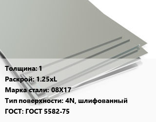 Лист нержавеющий 1 1.25хL Сталь: 08Х17 Тип:4N, шлифованный ГОСТ 5582-75