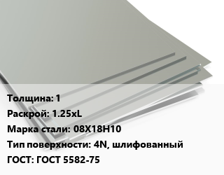 Лист нержавеющий 1 1.25хL Сталь: 08Х18Н10 Тип:4N, шлифованный ГОСТ 5582-75