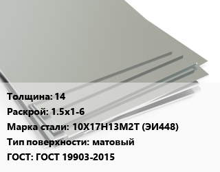 Лист нержавеющий 14 1.5х1-6 Сталь: 10Х17Н13М2Т (ЭИ448) Тип:матовый ГОСТ 19903-2015