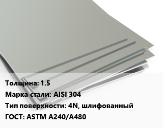 Лист нержавеющий 1.5 Сталь: AISI 304 Тип:4N, шлифованный ASTM A240/A480