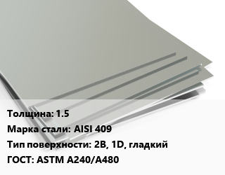 Лист нержавеющий 1.5 Сталь: AISI 409 Тип:2B, 1D, гладкий ASTM A240/A480