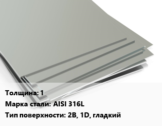 Лист нержавеющий 1 Сталь: AISI 316L Тип:2B, 1D, гладкий ASTM A240/A480
