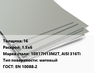 Лист нержавеющий 16 1.5х6 Сталь: 10Х17Н13М2Т, AISI 316Ti Тип:матовый EN 10088-2