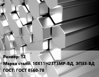 Шестигранник нержавеющий 12 Сталь: 10Х11Н23Т3МР-ВД, ЭП33-ВД ГОСТ: ГОСТ 8560-78