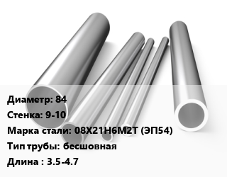 Труба нержавеющая 84х9-10 мм Сталь 08Х21Н6М2Т (ЭП54) бесшовная L=3.5-4.7 цена от 126 000 сом / т, где купить, условия доставки в Бишкеке и Чуйской области