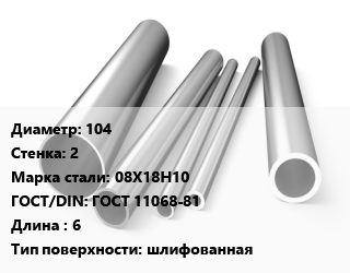Труба нержавеющая 104х2 мм Сталь 08Х18Н10 ГОСТ: ГОСТ 11068-81 L=6 шлифованная