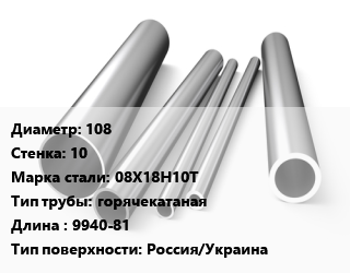 Труба нержавеющая 108х10 мм Сталь 08Х18Н10Т горячекатаная L=9940-81 Россия/Украина