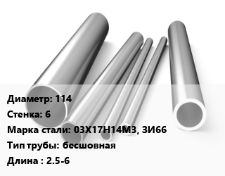 Труба нержавеющая 114х6 мм Сталь 03Х17Н14М3, ЗИ66 бесшовная L=2.5-6