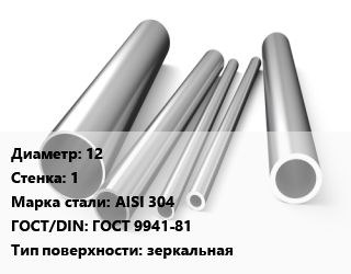 Труба нержавеющая 12х1 мм Сталь AISI 304 ГОСТ: ГОСТ 9941-81 зеркальная