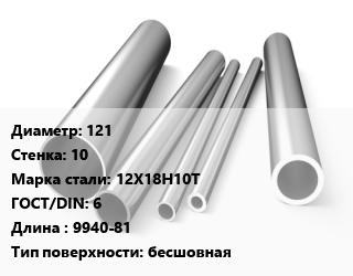 Труба нержавеющая 121х10 мм Сталь 12Х18Н10Т ГОСТ: 6 L=9940-81 бесшовная