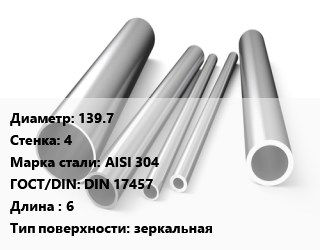 Труба нержавеющая 139.7х4 мм Сталь AISI 304 ГОСТ: DIN 17457 L=6 зеркальная