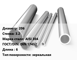 Труба нержавеющая 206х3.2 мм Сталь AISI 304 ГОСТ: DIN 17457 L=6 зеркальная