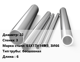 Труба нержавеющая 22х3 мм Сталь 03Х17Н14М3, ЗИ66 бесшовная L=6