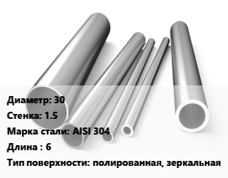 Труба нержавеющая 30х1.5 мм Сталь AISI 304 L=6 полированная, зеркальная, метр, электросварная цена от 472.5 сом / т, где купить, условия доставки в Бишкеке и Чуйской области