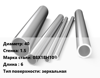 Труба нержавеющая 40х1.5 мм Сталь 08Х18Н10 L=6 зеркальная, метр, электросварная, импорт цена от 607.5 сом / т, где купить, условия доставки в Бишкеке и Чуйской области
