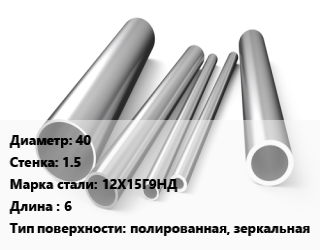 Труба нержавеющая 40х1.5 мм Сталь 12Х15Г9НД L=6 полированная, зеркальная