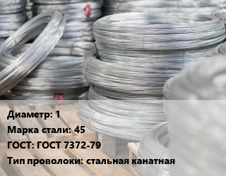 Проволока канатная 1 Сталь: 45 ГОСТ: ГОСТ 7372-79 стальная канатная