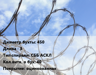 Проволока колючая спиралевидная ОКС 450х3 СББ АСКЛ Витков:40 оцинкованная