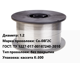 Проволока сварочная 1.2 Сталь: Св-08Г2С ГОСТ: ТУ 1227-017-00187240-2010 без покрытия кассета К-300