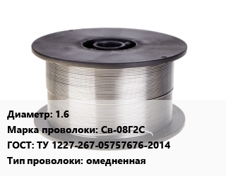 Проволока сварочная 1.6 Сталь: Св-08Г2С ГОСТ: ТУ 1227-267-05757676-2014 омедненная
